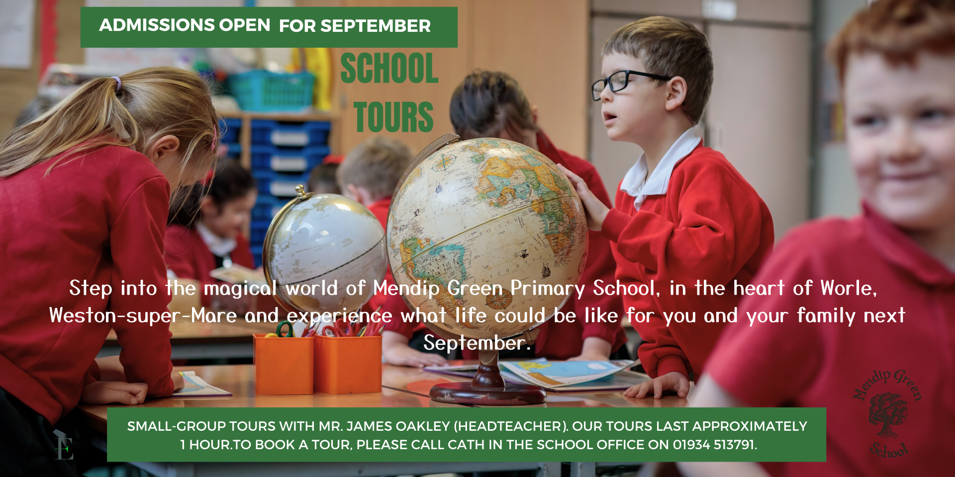 If you wish to apply for a place for your child to attend Mendip Green Primary School our admissions are delegated to North Somerset School Admissions to allocate places in line with current guidelines for those children starting school in September.